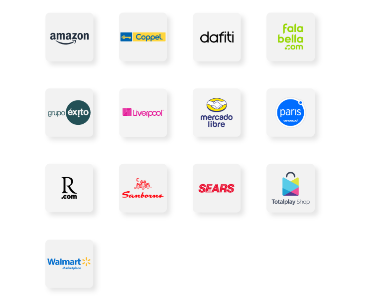 - Marketplaces: Nos integramos con los principales marketplaces para potenciar tu presencia online, dentro de ellos se encuentran los siguientes: