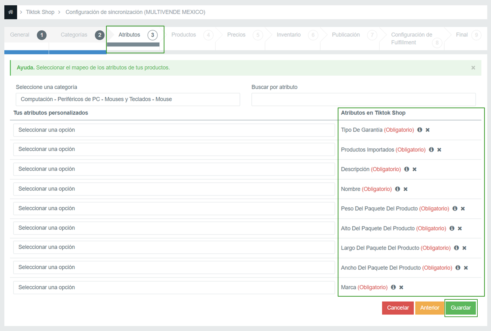Paso 3. Mapeo de tus atributos con los de TikTok Shop.