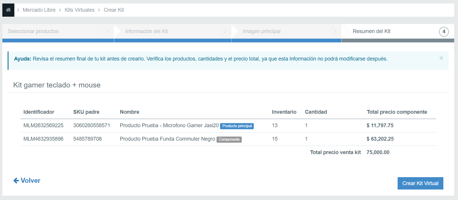 Si todo está correcto, haz clic en Crear Kit Virtual para finalizar el proceso.