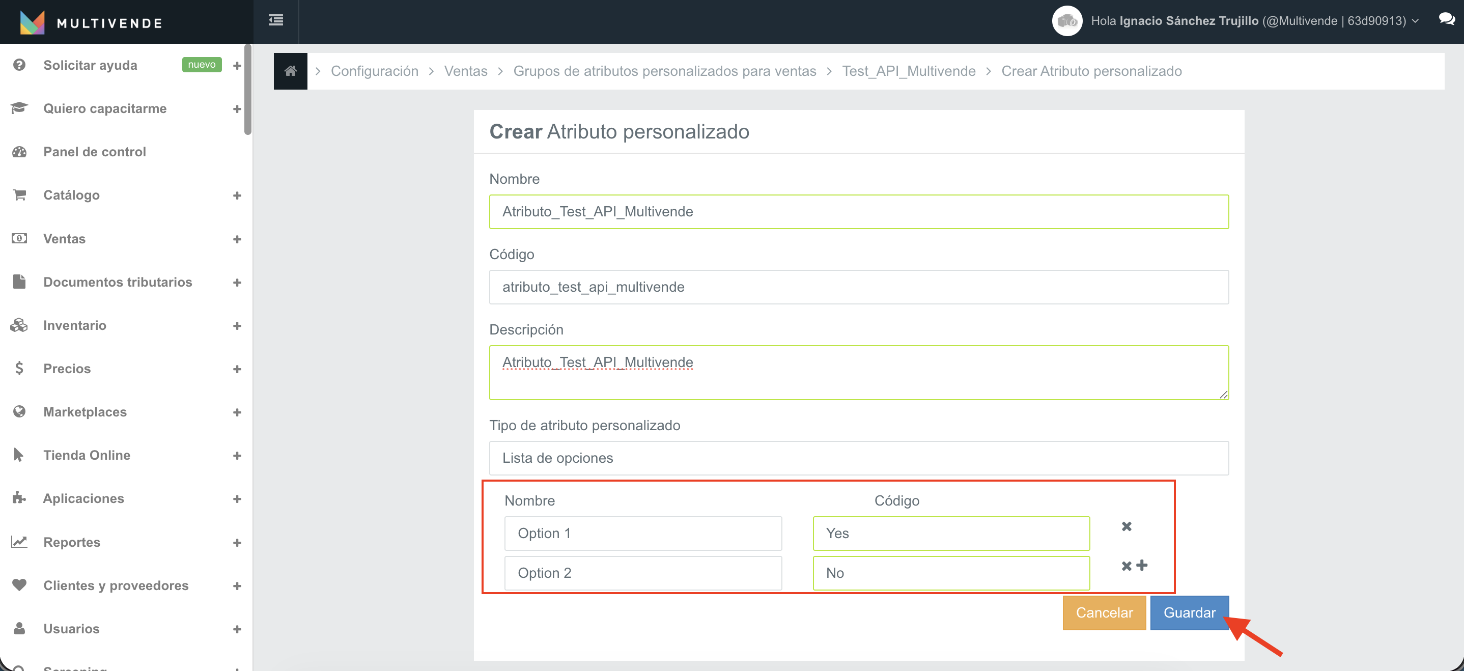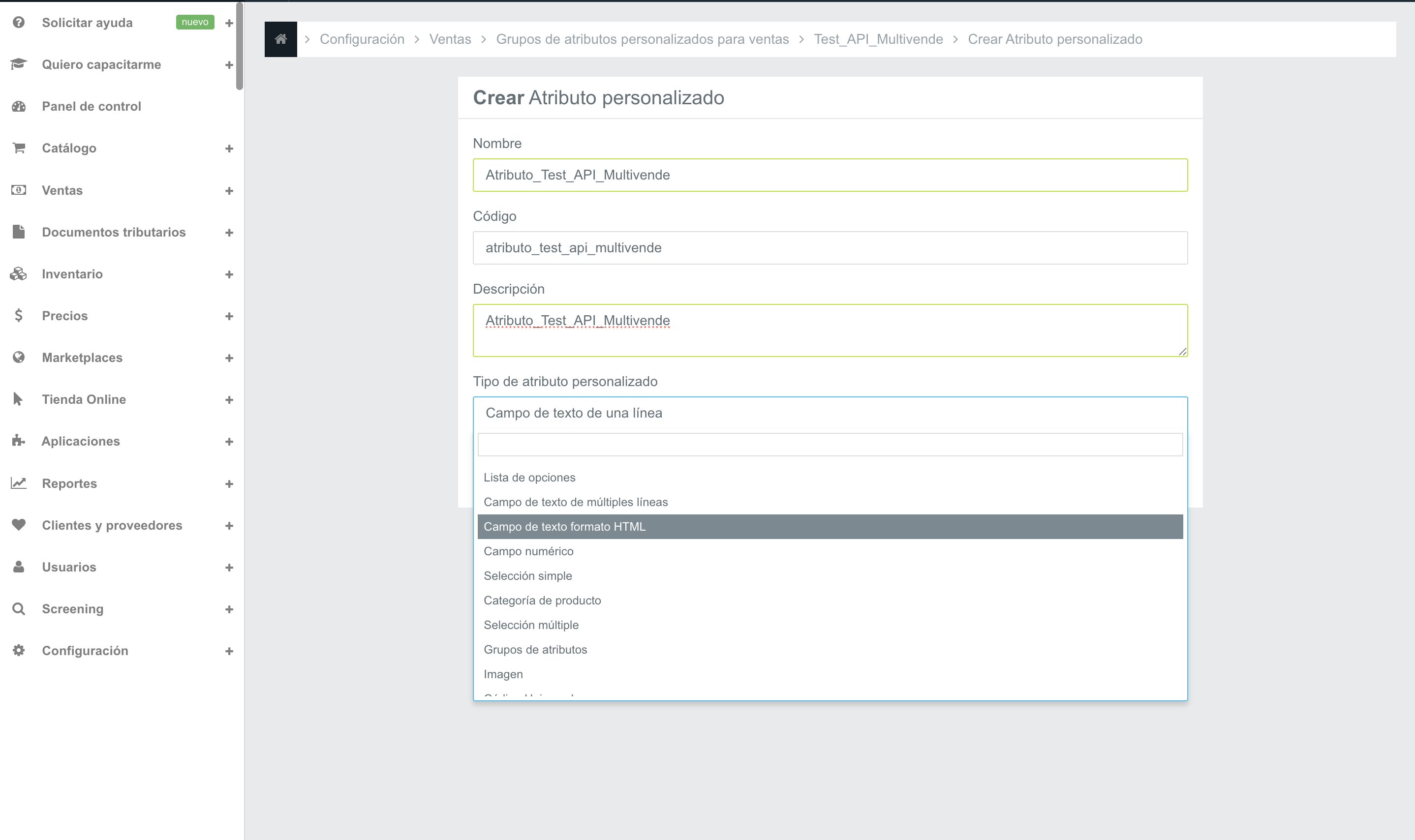 Este artículo te guiará paso a paso en la creación de un atributo personalizado para ventas dentro de Multivende, y cómo asignarlo mediante la integración.